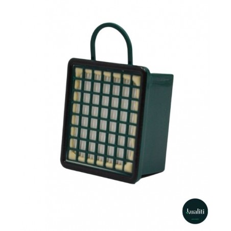 Filtro HEPA Kualiti compatibile con Folletto VK130 e VK131, ideale per trattenere polveri sottili e allergeni. Migliora la qualità dell’aria e mantiene elevate le prestazioni di aspirazione. Perfetto per uso domestico e manutenzione periodica. Confezione da 1 filtro.