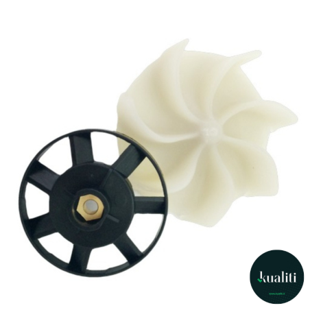 Kit ventole motore Kualiti compatibili con aspirapolvere Folletto VK120, VK121 e VK122. Ideali per garantire il corretto raffreddamento del motore ed evitare surriscaldamenti. Realizzate in plastica tecnica resistente al calore. Perfette per manutenzione e riparazione fai da te.